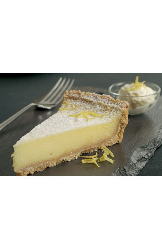 A soft pastry case filled with a baked lemon custard, finished with a sugar dusting