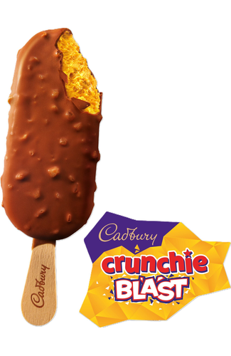 Honeycombed flavour ice cream covered in milk chocolate with popping candy