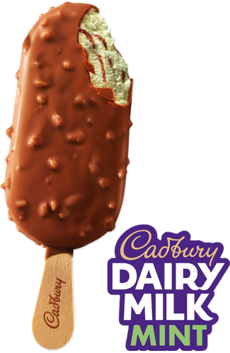 Mint ice cream dipped in milk chocolate (32%) and mint flavoured sugar pieces, with a mint milk chocolate flavoured swirl (7.5%).