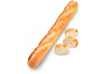A fully baked, hinge sliced soft white roll, approximately 190mm in length, topped with semolina dusting. The rolls are supplied frozen.