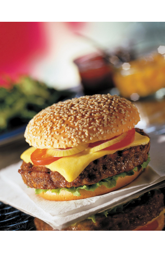 Frozen, fully cooked 6oz* Beef Burgers Frozen, fully cooked 6oz seasoned beef burgers with added textured soya protein.