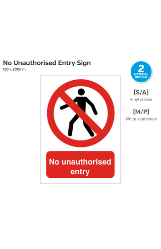 Mileta No Unauthorised Entry Safety Sign - 150 x 200mm - Self Adhesive