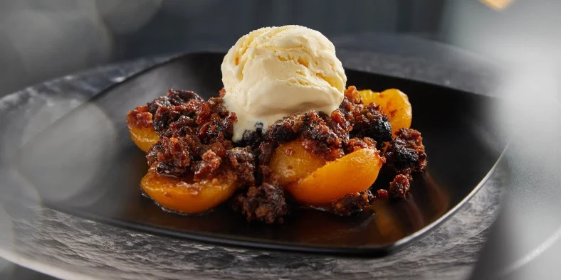 Baked Fruit with Christmas Pudding Crumble