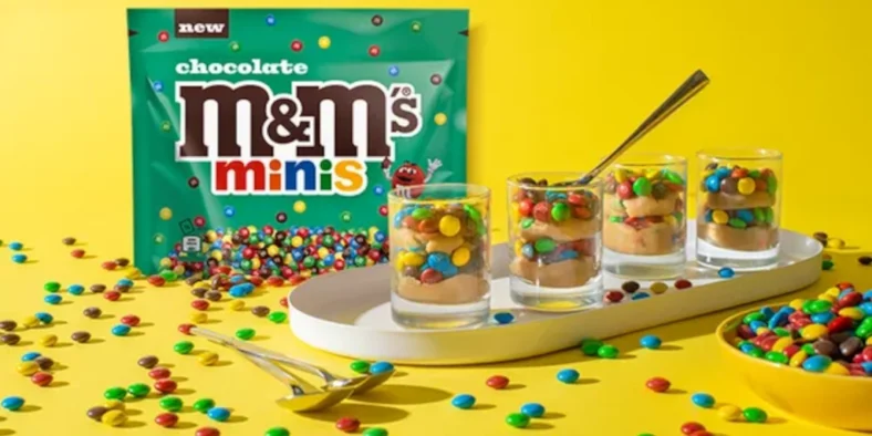 - Spoon tablespoonful of cookie dough into bottom of each of 12 shot glasses or mini-2-oz jars; layer 3 g (1/2 tsp) M&M’S Mini over top. Repeat layers twice. Serve immediately.