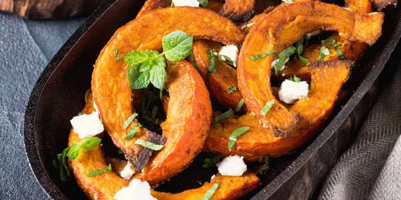 - Roasted pumpkin with blue cheese, a drizzle of honey, and toasted pumpkin seeds.
